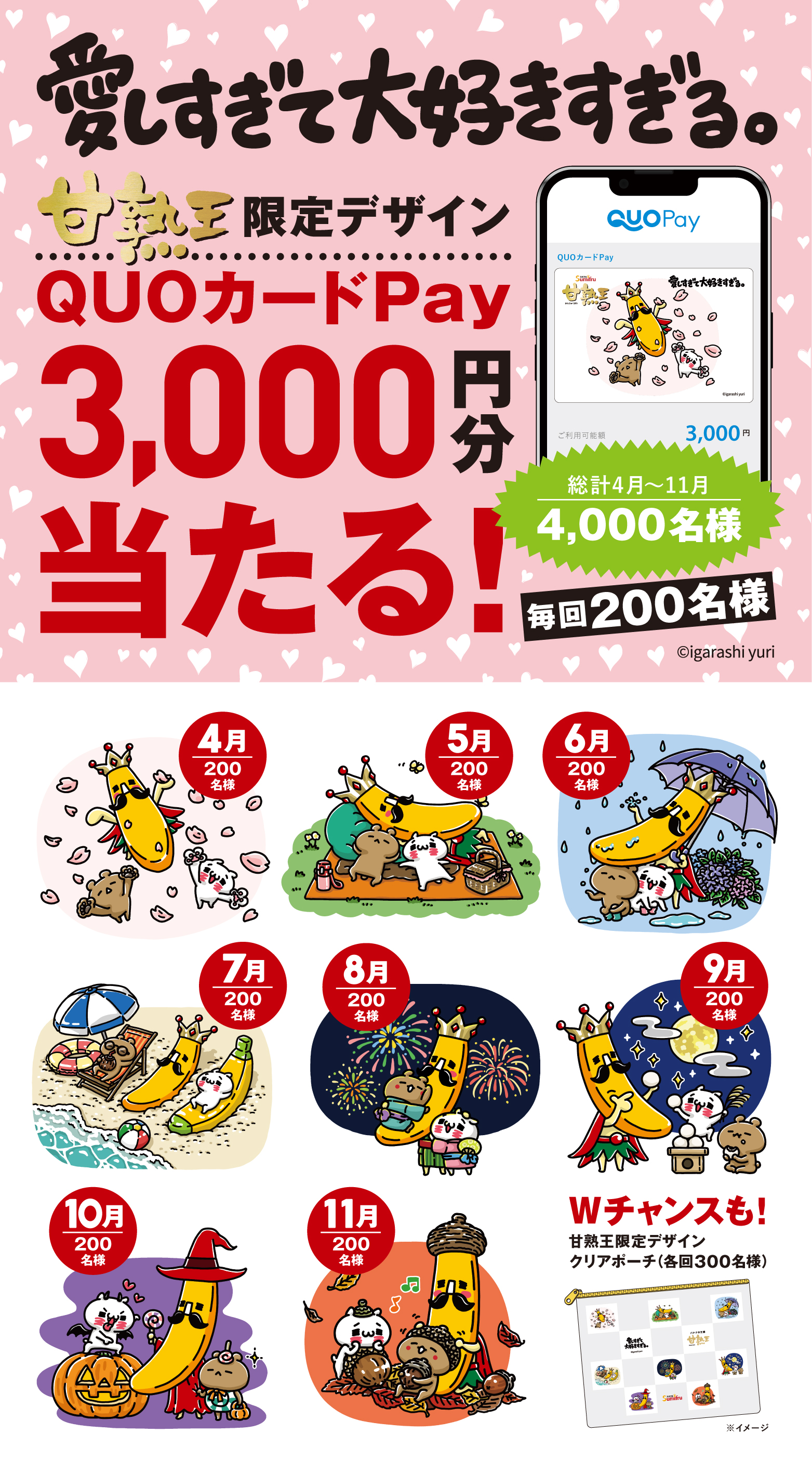 ●Wチャンス:『 愛しすぎて大好きすぎる。』甘熟王限定デザインクリアポーチ(毎月300名様、計2,400名様)